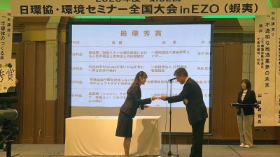 第32回日環協・環境セミナー全国大会 in EZO(蝦夷)が、2025年10月16日(木)~17日(金)に札幌市内で開催されました。当協会職員も参加し、「農薬類(シマジン、チオベンカルブ、有機リン)における分析効率化の検討」をテーマに発表しました。これが高い評価を受け、栄えある最優秀賞を受賞しました。