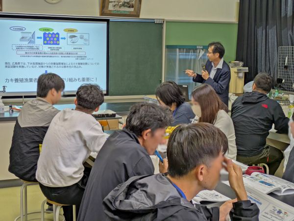 2025年10月23日、瀬戸内海沿岸の環境行政職の方を主な対象とした公益社団法人瀬戸内海環境保全協会主催の「瀬戸内海環境保全トレーニングプログラム研修」が、江田島市の「さとうみ科学館」で開催されました。この研修会では、当協会職員2名が、カキの生育や海洋プラスチックごみの問題について講義を行いました。