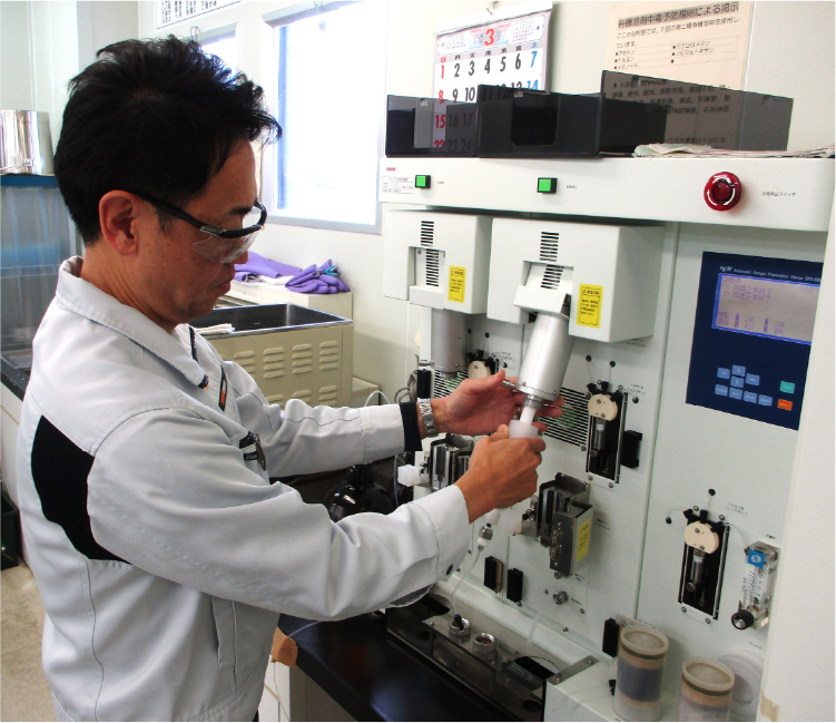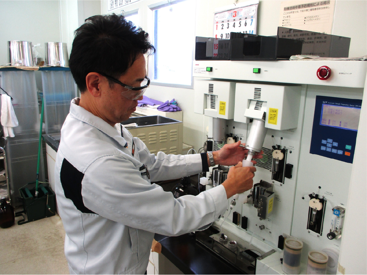 その中で私は、計量証明書(分析結果書)の確認や分析指示のほか、これまでに培ってきた技術を後輩に継承することに注力しています。
